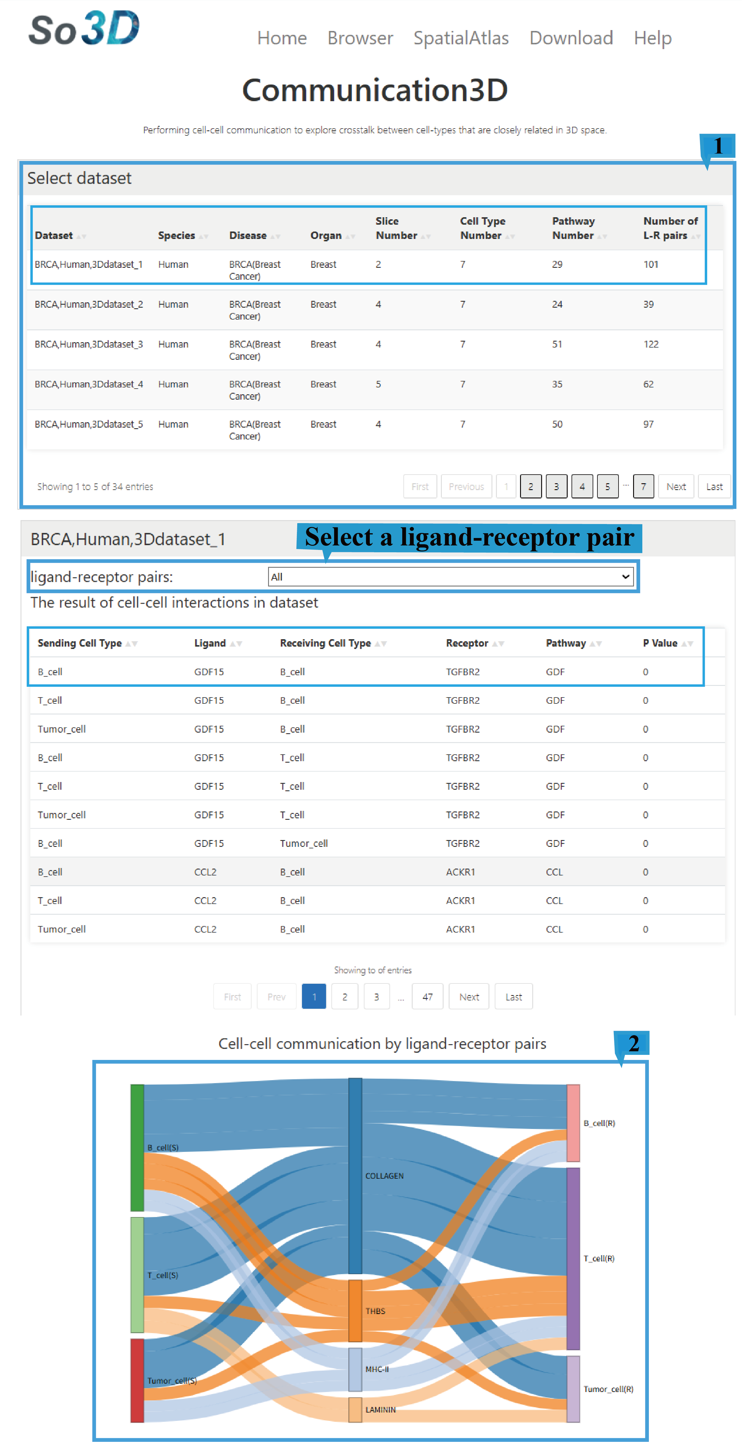 Communication3D: Cellular communication analysis of the 3D spatial transcriptome. The results of cell communication analysis are presented in the form of tables, pictures and 3D models.